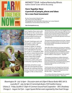 About the Book: We want to change the way the food system works! Farm Together Now meets with people across the country who are challenging the conventions of industrialized farming and exclusive green economies.Picked by Michael Pollan as his favorite food book of 2010, this part-travelogue, part-oral history, part-creative exploration of food politics will introduce readers to twenty groups working in agriculture and sustainable food production in the U.S. Throughout 2009 the authors visited twenty farms from coast to coast, talking to farmers about their engagement in sustainable food production, public policy and community organizing efforts. Interviews and photo essays with each farm/garden/project illustrate the inspiring histories, unique characters and everyday struggles of life on these farms. It is through sharing diverse voices from the contemporary farm that this book will inspire and cultivate a new wave of agrarians. Half of the author’s profits will be put into a fund to encourage like-minded documentary projects. See reviews from authors Raj Patel, Rebecca Solnitt, Vandana Shiva, Sandor Katz and blogs Real Food for All, Beyond The Plate, Treehugger, Grist, Farmbrarian, Bookslut, Chicago Reader and others here